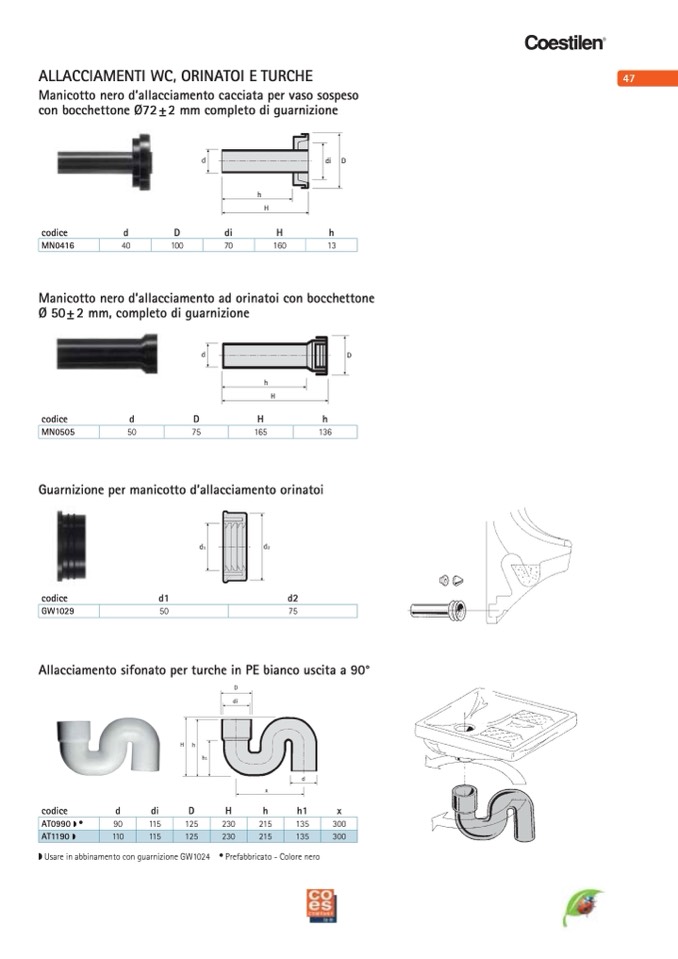 ◗ Usare in abbinamento con guarnizione GW1024 • Prefabbricato - Colore nero