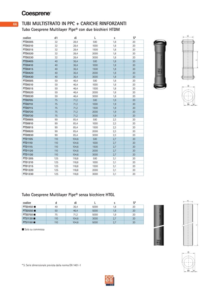 * S: Serie dimensionale prevista dalla norma EN 1451-1