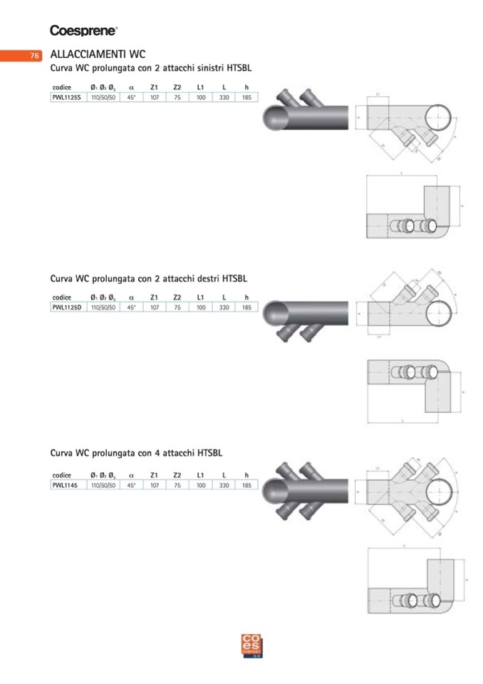 Curva WC prolungata con 4 attacchi HTSBL
