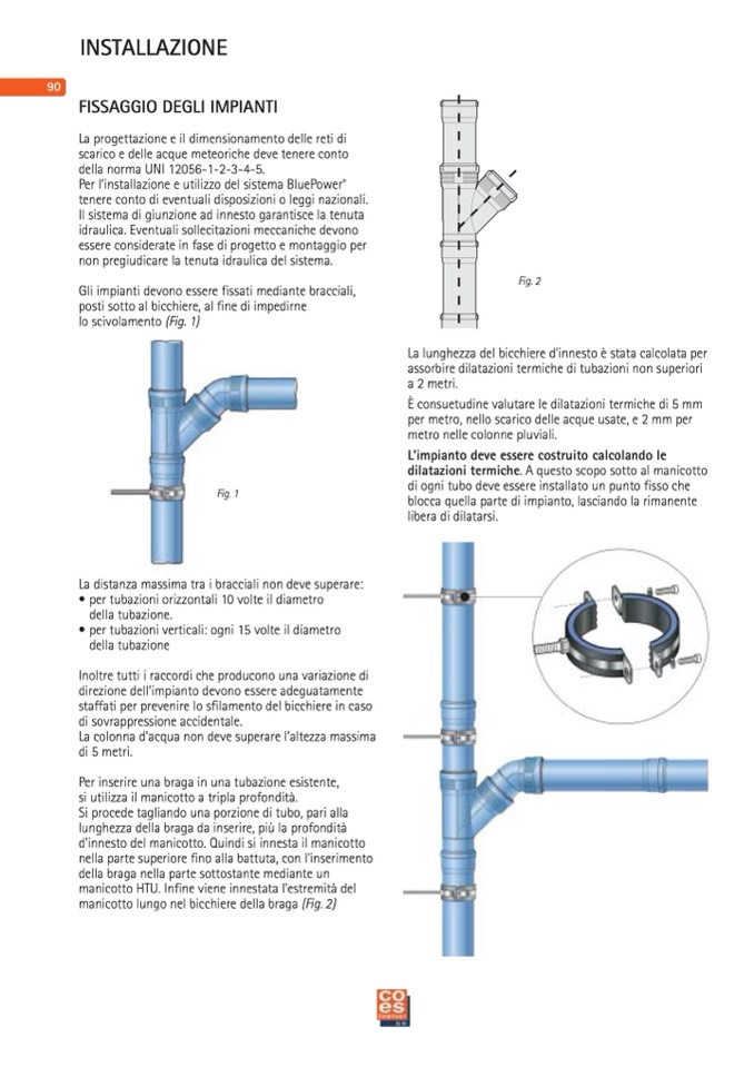 di ogni tubo deve essere installato un punto fisso che