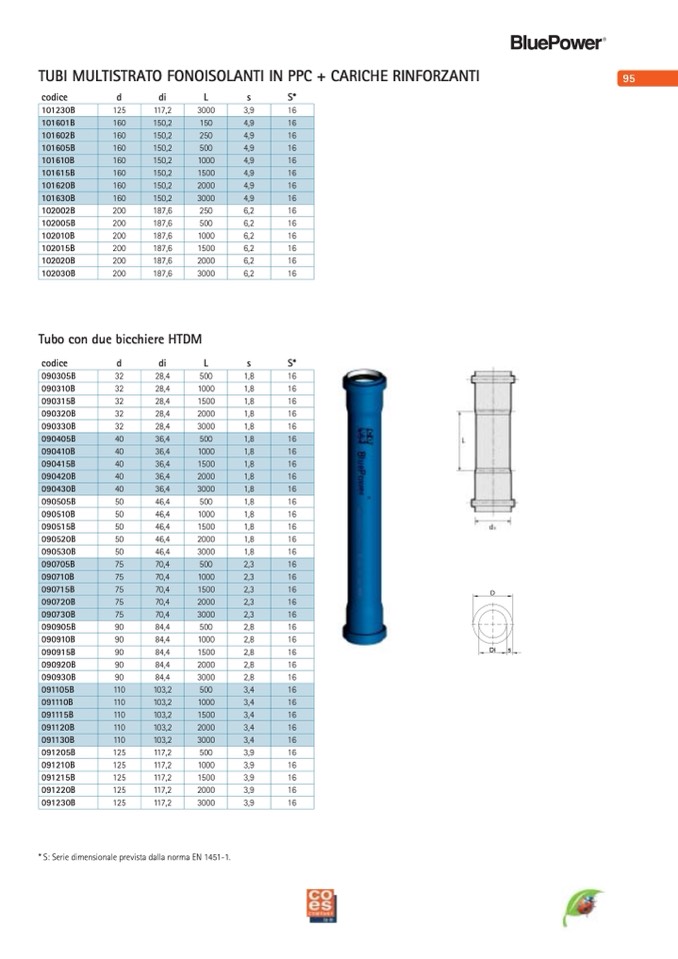 * S: Serie dimensionale prevista dalla norma EN 1451-1.