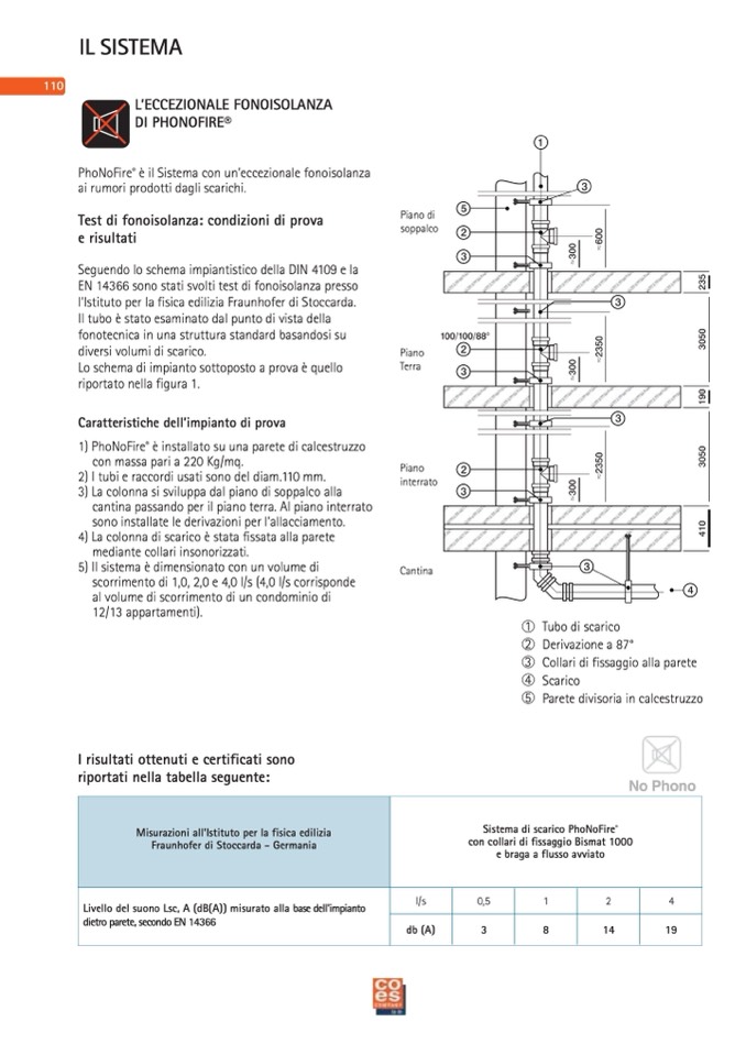 EN 14366 sono stati svolti test di fonoisolanza presso