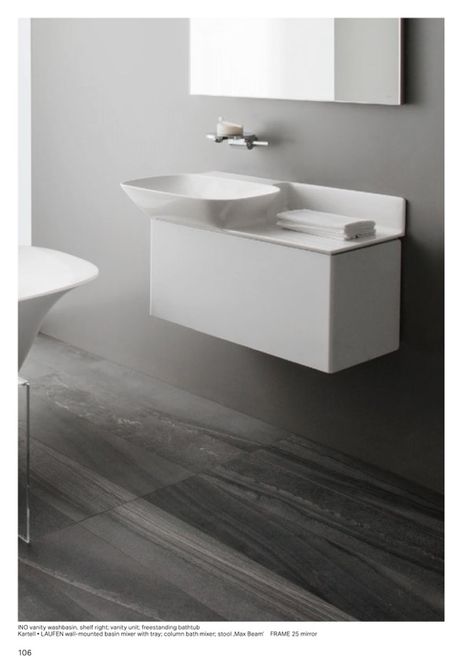 INO vanity washbasin, shelf right vanity unit freestanding bathtub