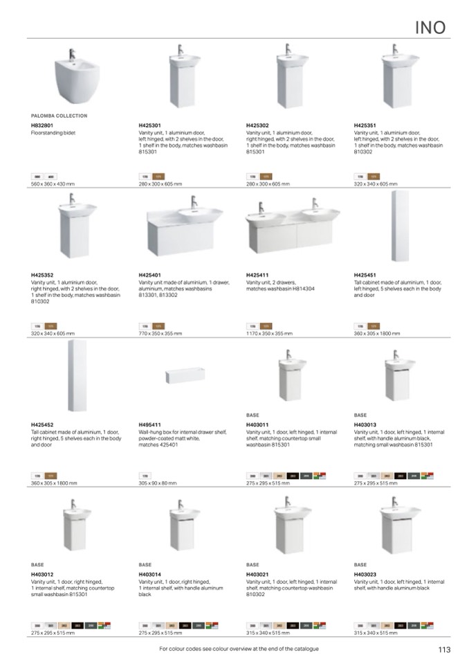 For colour codes see colour overview at the end of the catalogue