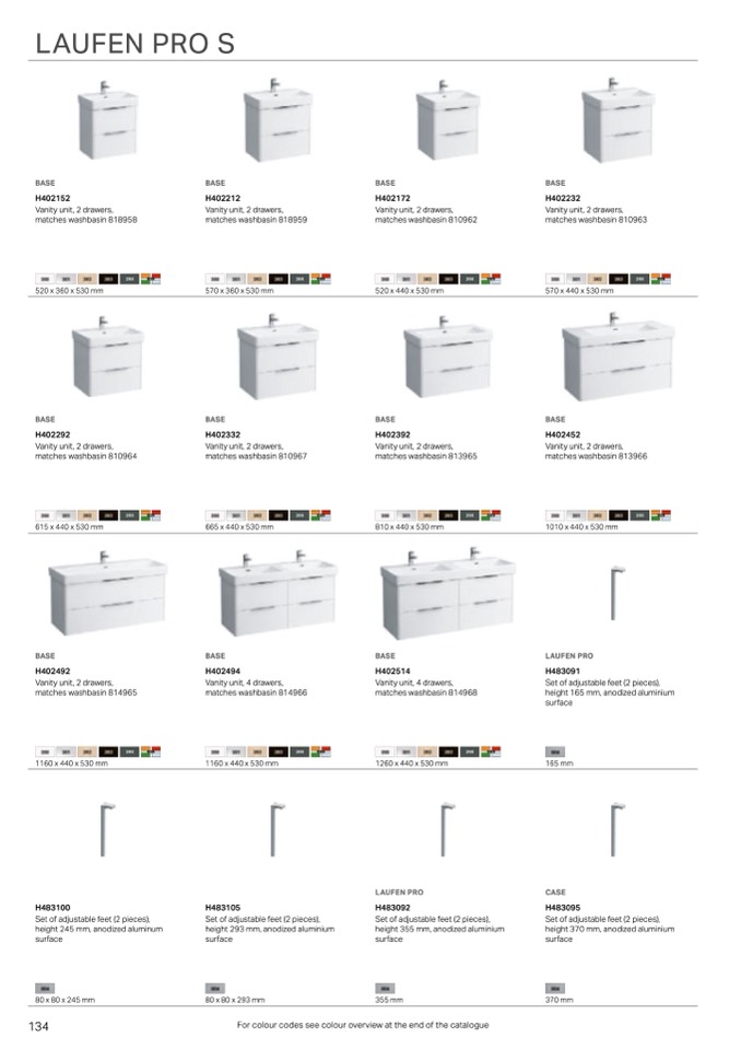 For colour codes see colour overview at the end of the catalogue
