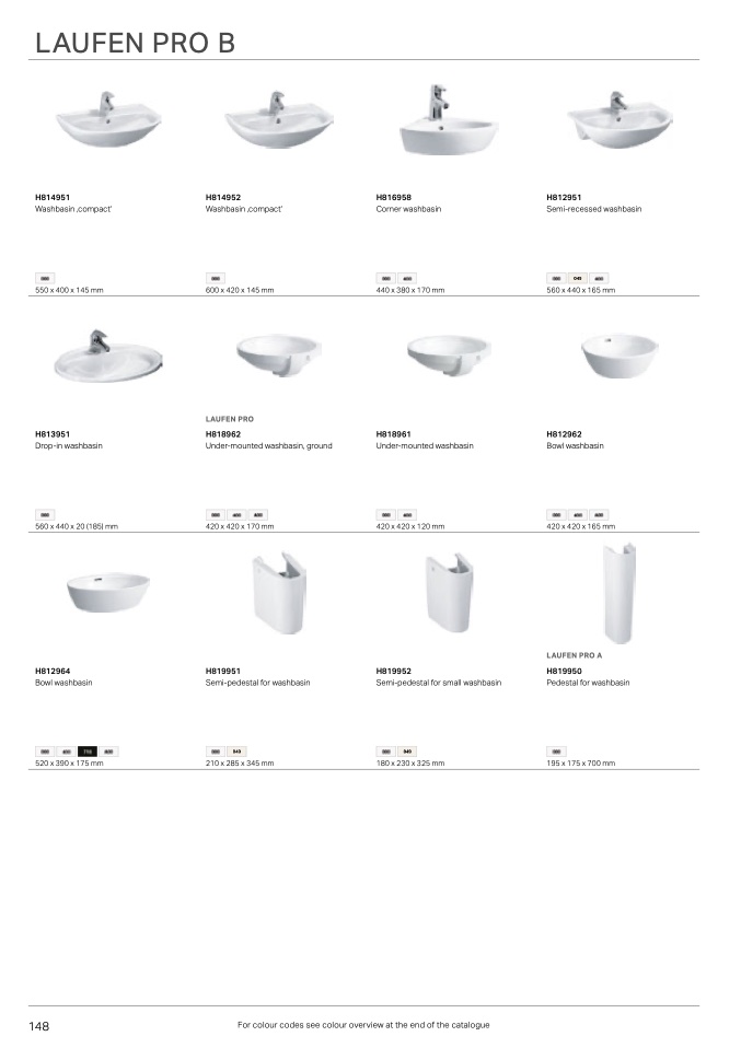 For colour codes see colour overview at the end of the catalogue
