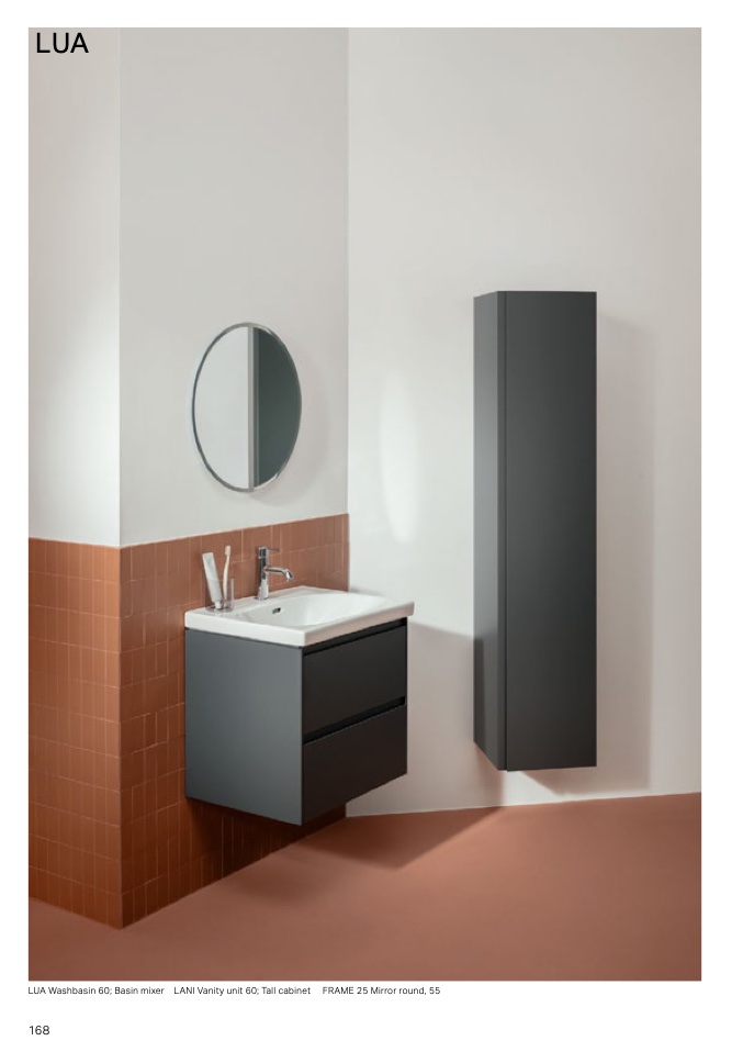 LUA Washbasin 60 Basin mixer LANI anity unit 60 all cabinet FRAME 25 Mirror round, 55
