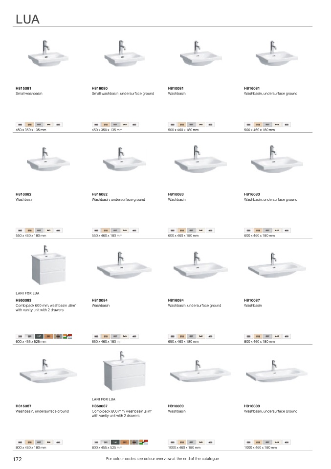 For colour codes see colour overview at the end of the catalogue