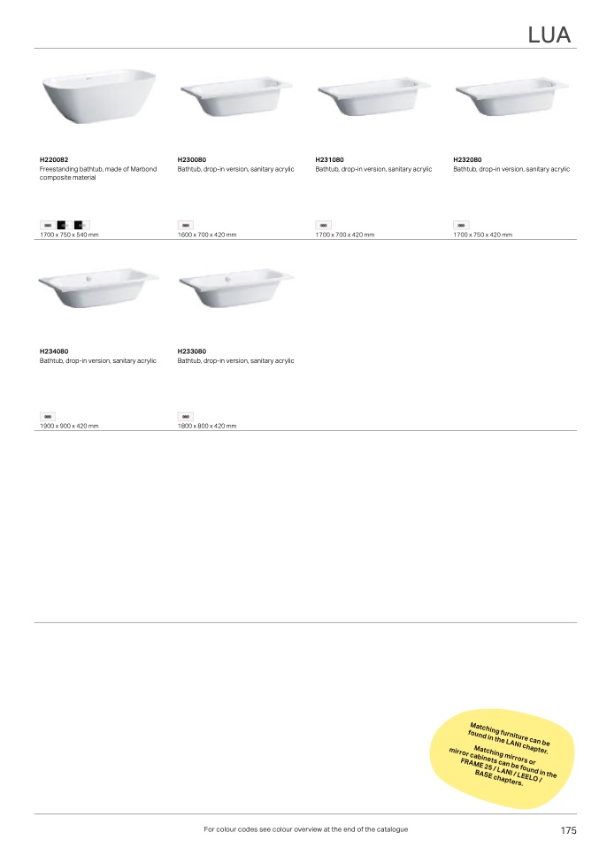For colour codes see colour overview at the end of the catalogue