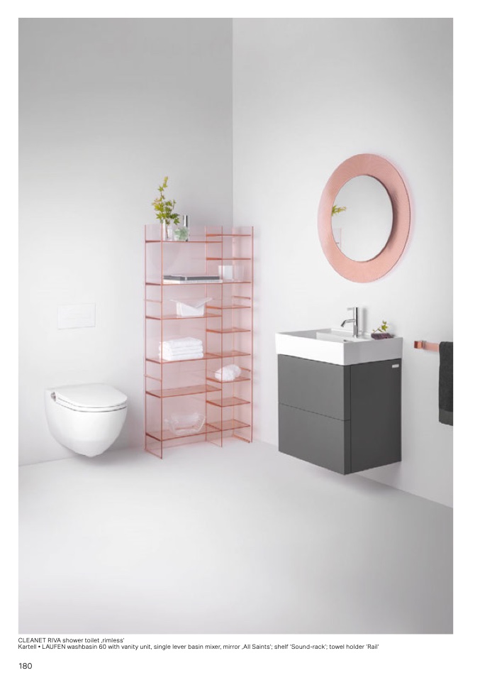 Kartell • LAUFEN washbasin 60 with vanity unit, single lever basin mixer, mirror ‚All Saints‘; shelf ‘Sound-rack‘; towel holder ‘Rail‘
