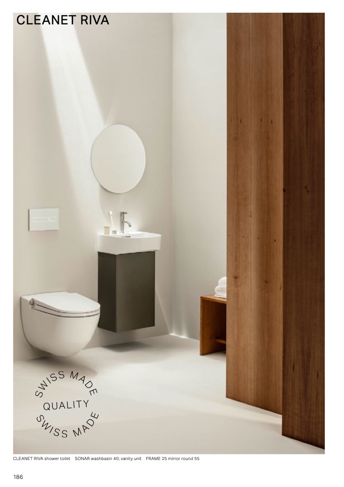 CLEANE RIA shower toilet SONAR washbasin 40 vanity unit FRAME 25 mirror round 55