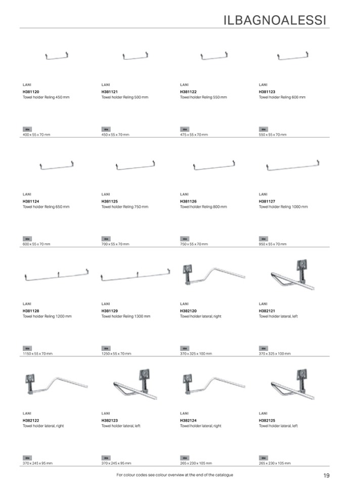 For colour codes see colour overview at the end of the catalogue