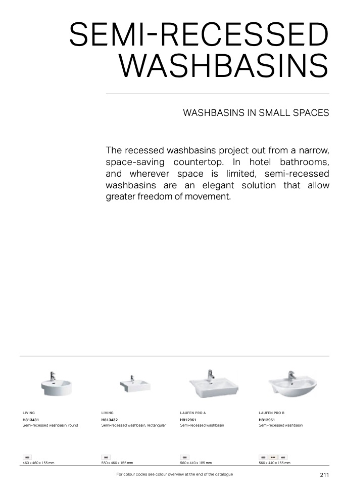 For colour codes see colour overview at the end of the catalogue