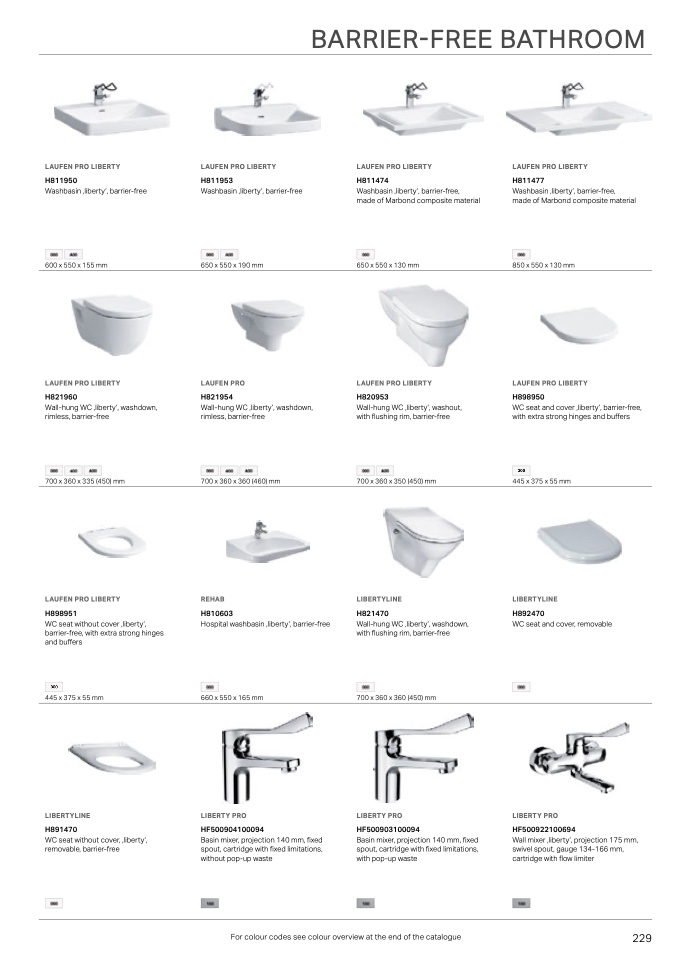 For colour codes see colour overview at the end of the catalogue