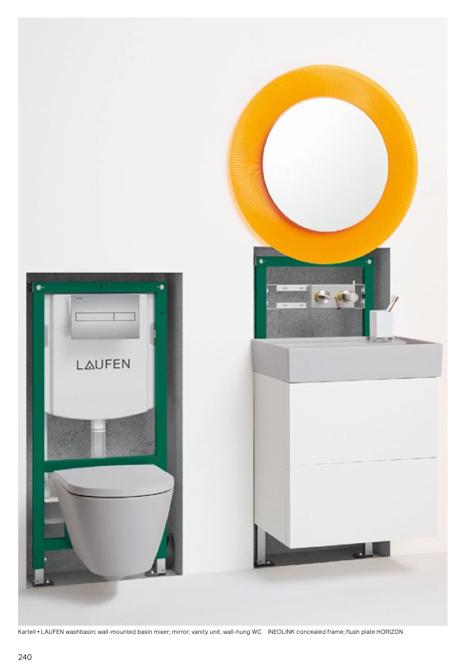 Kartell • LAUFEN washbasin wall-mounted basin mixer mirror vanity unit, wall-hung WC INEOLINK concealed frame flush plate ORION