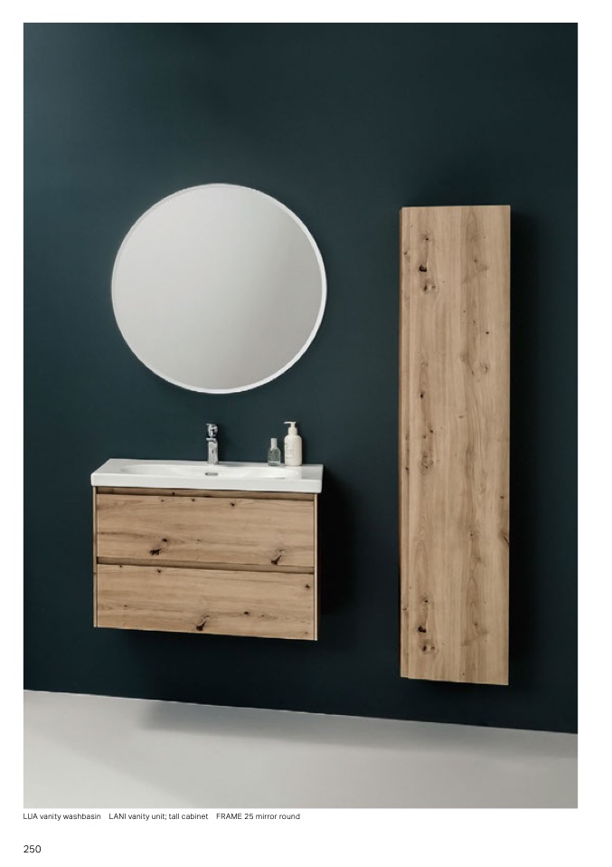 LUA vanity washbasin LANI vanity unit tall cabinet FRAME 25 mirror round