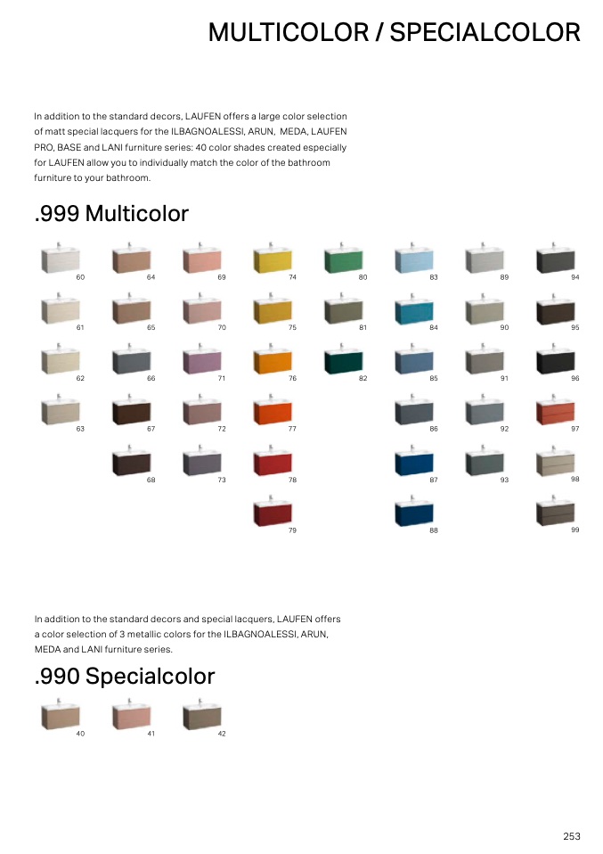 In addition to the standard decors, LAUFEN offers a large color selection