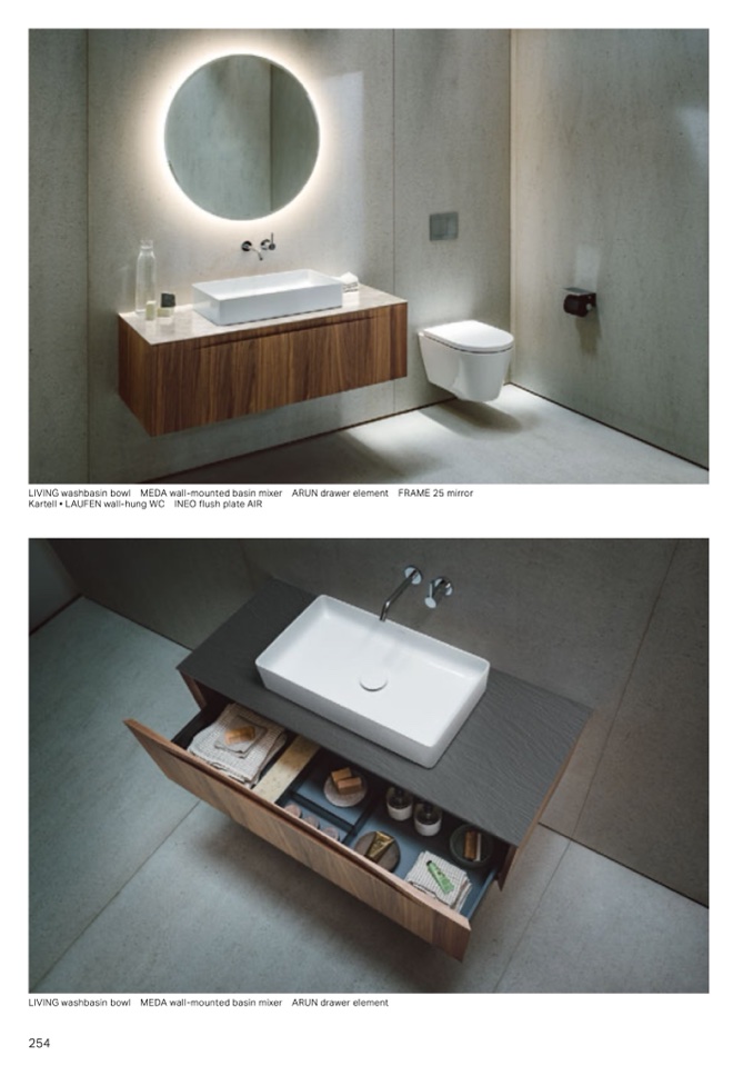 LIIN washbasin bowl MEDA wall-mounted basin mixer ARUN drawer element