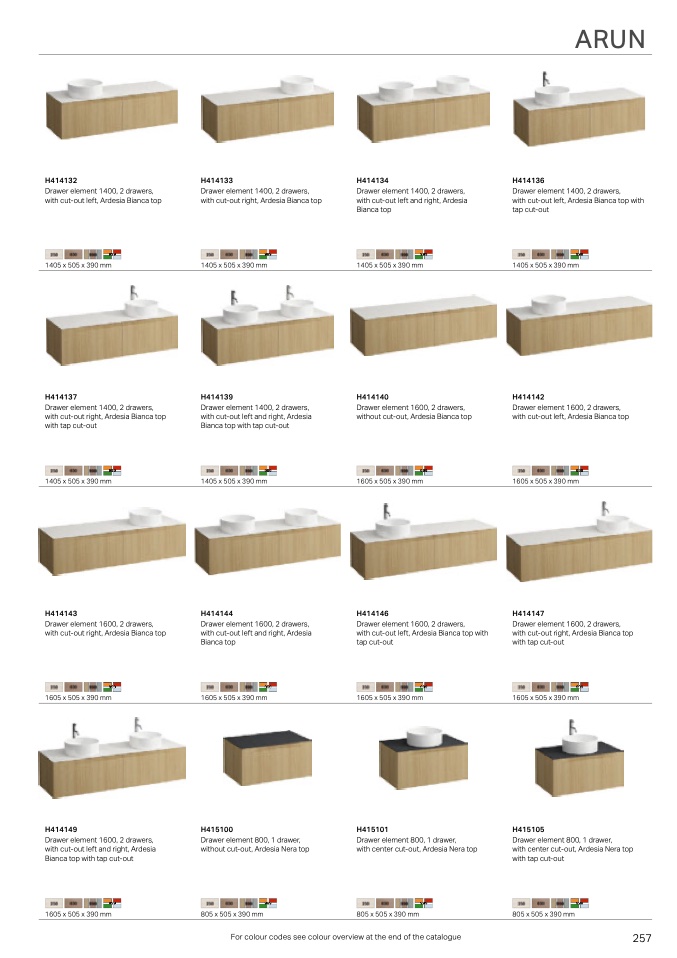For colour codes see colour overview at the end of the catalogue
