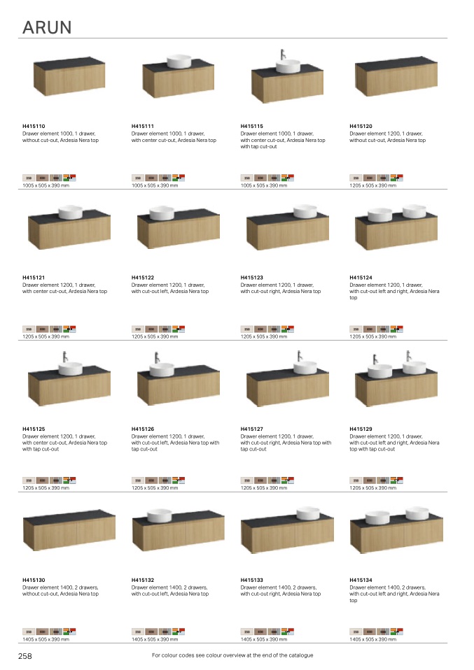 For colour codes see colour overview at the end of the catalogue