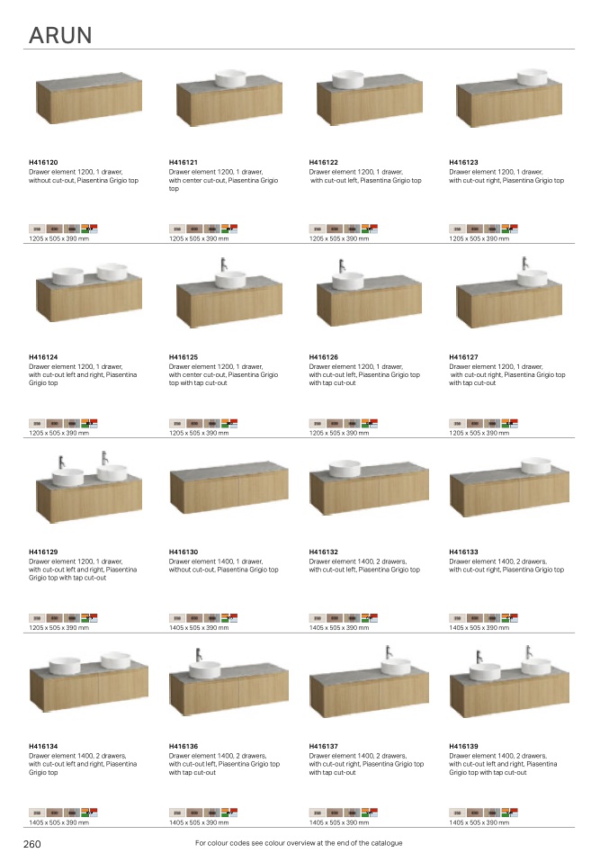 For colour codes see colour overview at the end of the catalogue