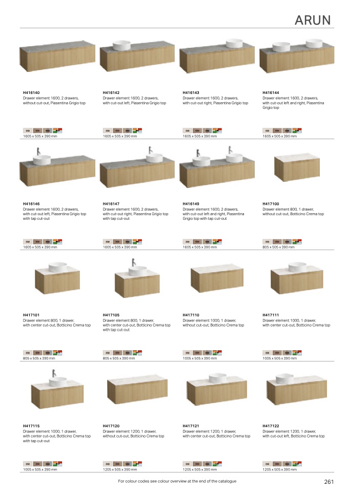 For colour codes see colour overview at the end of the catalogue