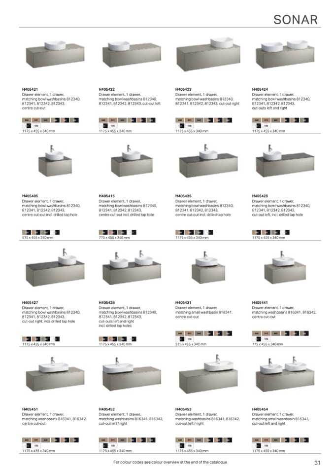 For colour codes see colour overview at the end of the catalogue