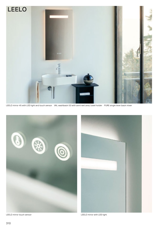 LEELO mirror 45 with LED light and touch sensor AL washbasin 53 with semi-wet area towel holder URE single lever basin mixer
