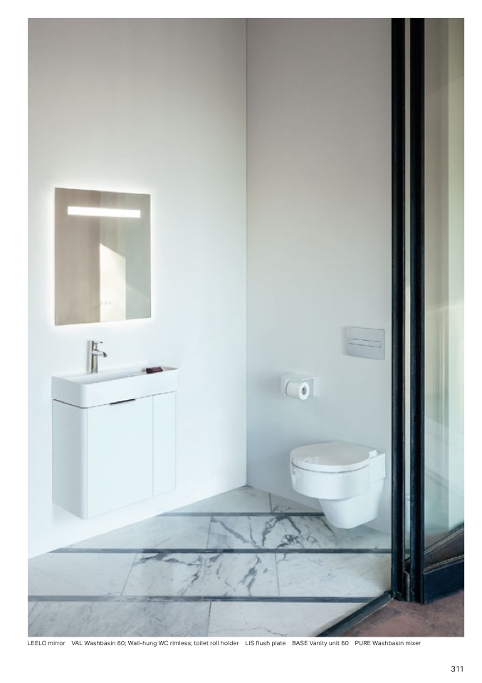 LEELO mirror AL Washbasin 60 Wall-hung WC rimless toilet roll holder LIS flush plate BASE anity unit 60 URE Washbasin mixer