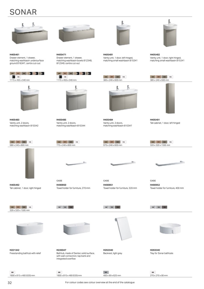 For colour codes see colour overview at the end of the catalogue