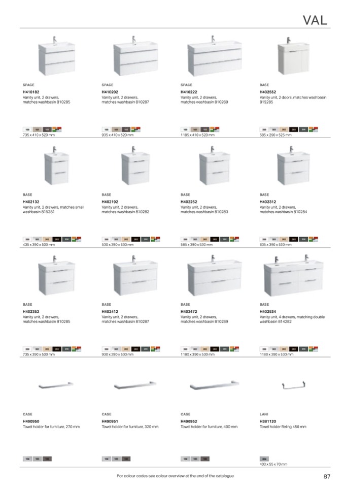 For colour codes see colour overview at the end of the catalogue