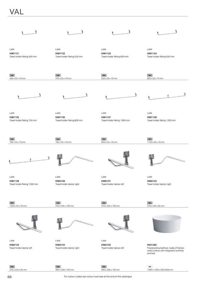 For colour codes see colour overview at the end of the catalogue
