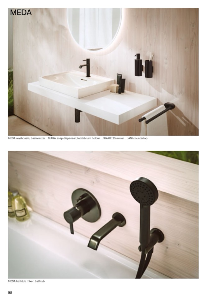 MEDA washbasin basin mixer NIARA soap dispenser toothbrush holder FRAME 25 mirror LANI countertop