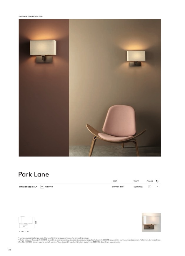 * Oyster coloured shades (ref: 5001013) available to order separately./Les abat-jours couleur coquille d'huître (ref: 5001013) peuvent être commandées séparément./Schirme in der Farbe Oyster