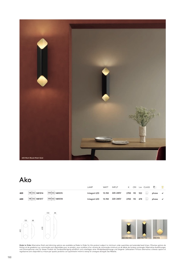 Made to Order Alternative finish and dimming options are available as Made to Order for this product subject to minimum order quantities and extended lead times./D’autres options de