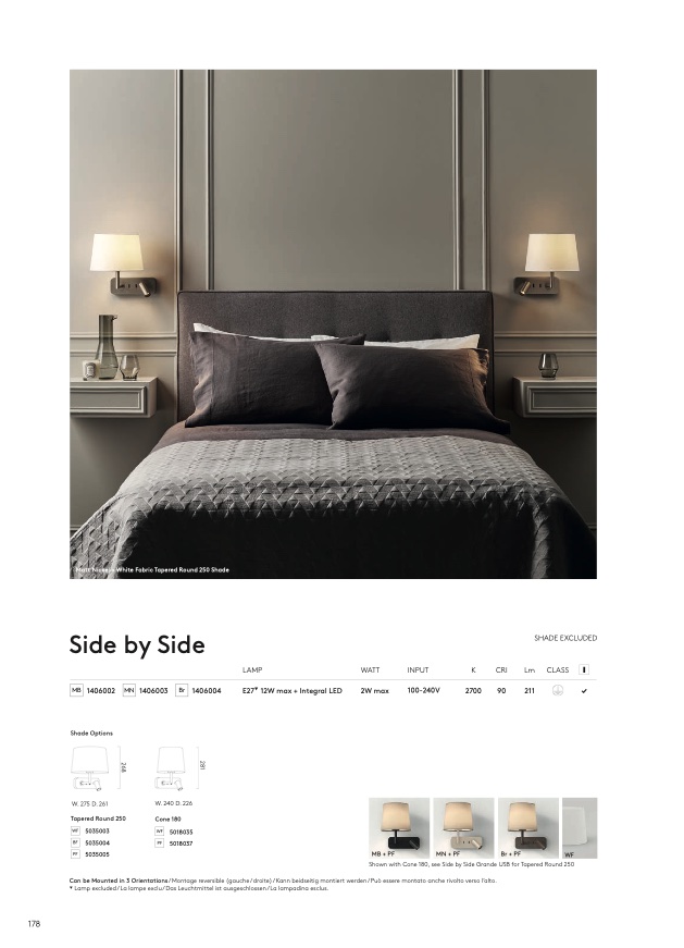 Can be Mounted in 3 Orientations / Montage reversible (gauche / droite) / Kann beidseitig montiert werden / Può essere montato anche rivolto verso l’alto.