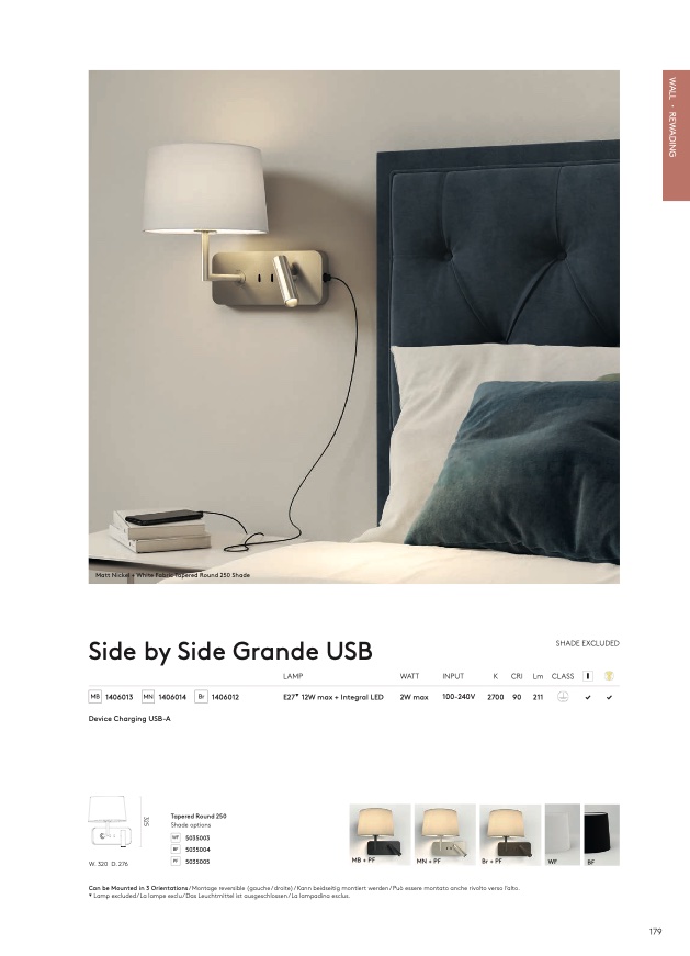 Can be Mounted in 3 Orientations / Montage reversible (gauche / droite) / Kann beidseitig montiert werden / Può essere montato anche rivolto verso l’alto.