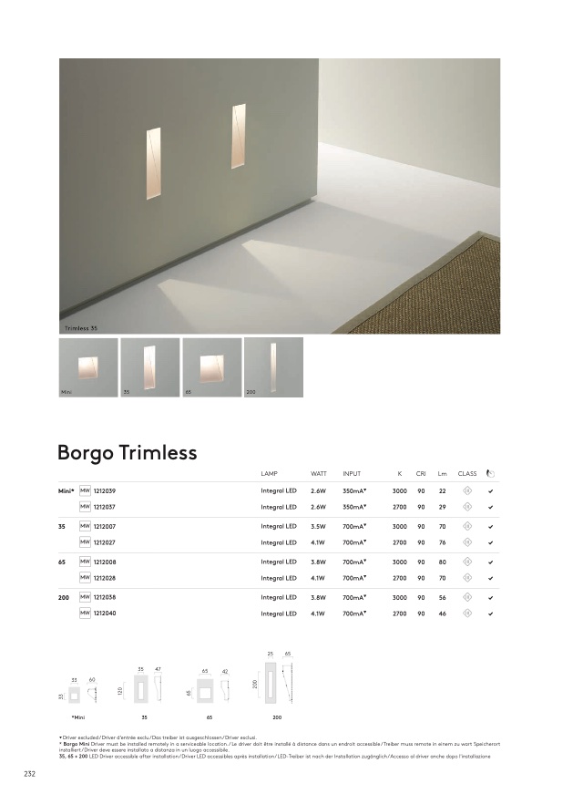 35, 65 + 200 LED Driver accessible after installation/Driver LED accessibles après installation/LED-Treiber ist nach der Installation zugänglich/Accesso al driver anche dopo l'installazione