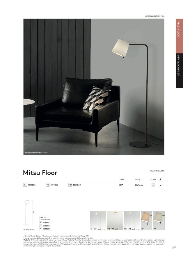 Made to Order Alternative finish options are available as Made to Order for this product subject to minimum order quantities and extended lead times. / D’autres options de finition sur