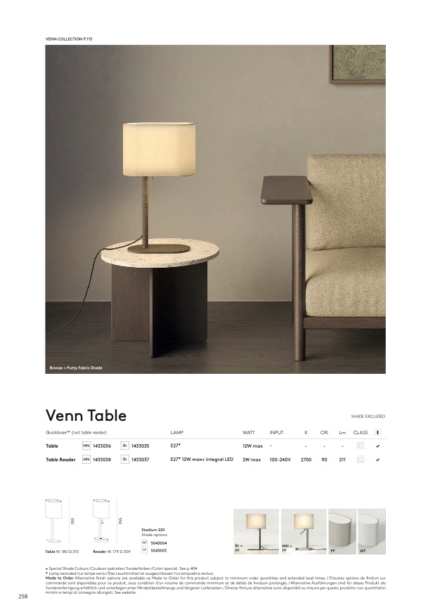 • Special Shade Colours / Couleurs spéciales / Sonderfarben /Colori speciali. See p.404