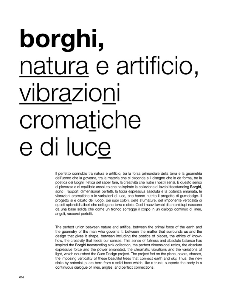 inspired the Borghi freestanding sink collection, the perfect dimensional ratios, the absolute