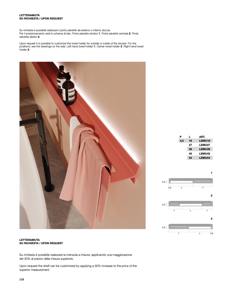 Su richiesta è possibile realizzare la mensola a misura, applicando una maggiorazione