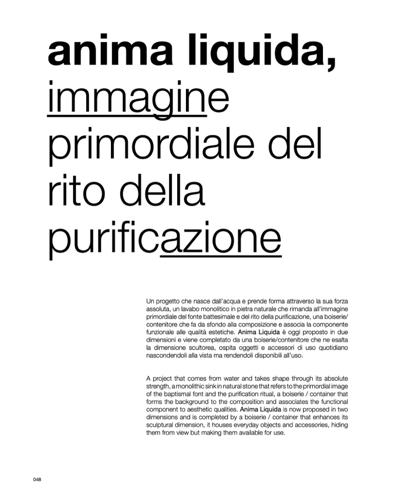 funzionale alle qualità estetiche. Anima Liquida è oggi proposto in due