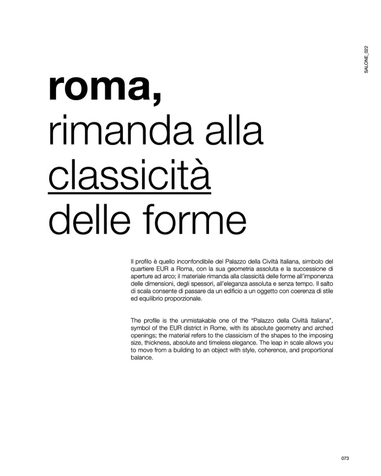 aperture ad arco; il materiale rimanda alla classicità delle forme all’imponenza
