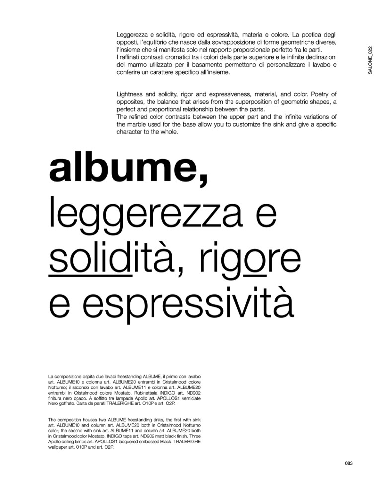 color; the second with sink art. ALBUME11 and column art. ALBUME20 both