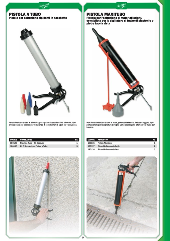 professionale per applicatori. Comprende di serie numero 5 ugelli per l’estrusione.