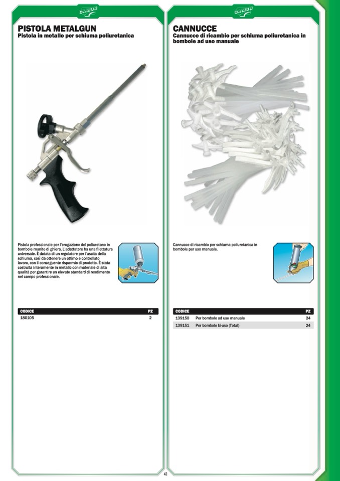 Cannucce di ricambio per schiuma poliuretanica in