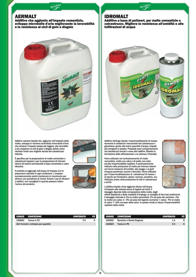 Il dosaggio ottimale è: Per la malta cementizia: 3% sul peso del cemento - Per