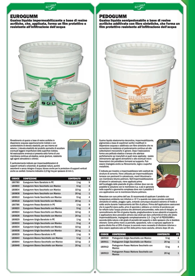 impermeabilizzante, impiegando complessivamente 1,5 - 2 kg/m2 di PEDOGUMM a