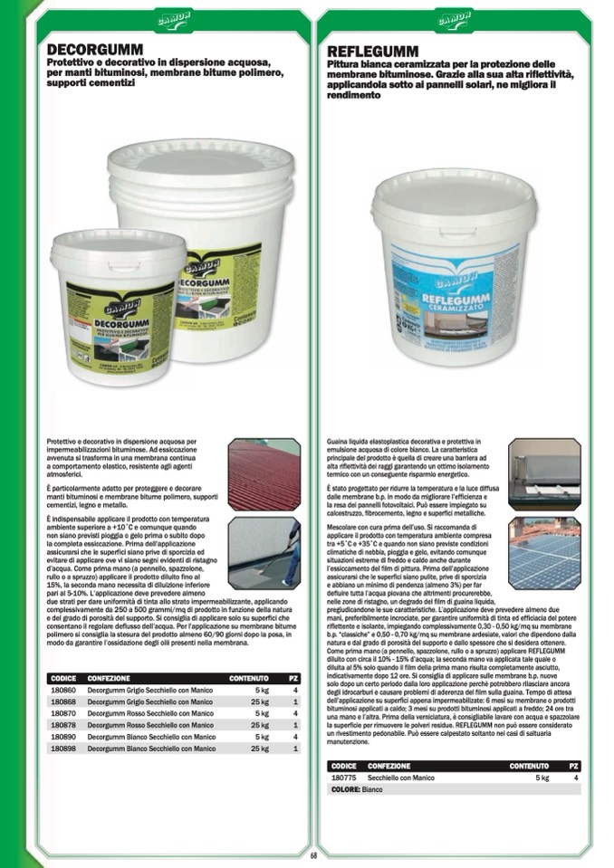 riflettente e isolante, impiegando complessivamente 0,30 - 0,50 kg/mq su membrane